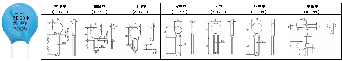 Remark: the Impluse voltage testing standards(1.2/50μs) with 40 times are only applicable to the products which with the varistor voltage more than 430V.